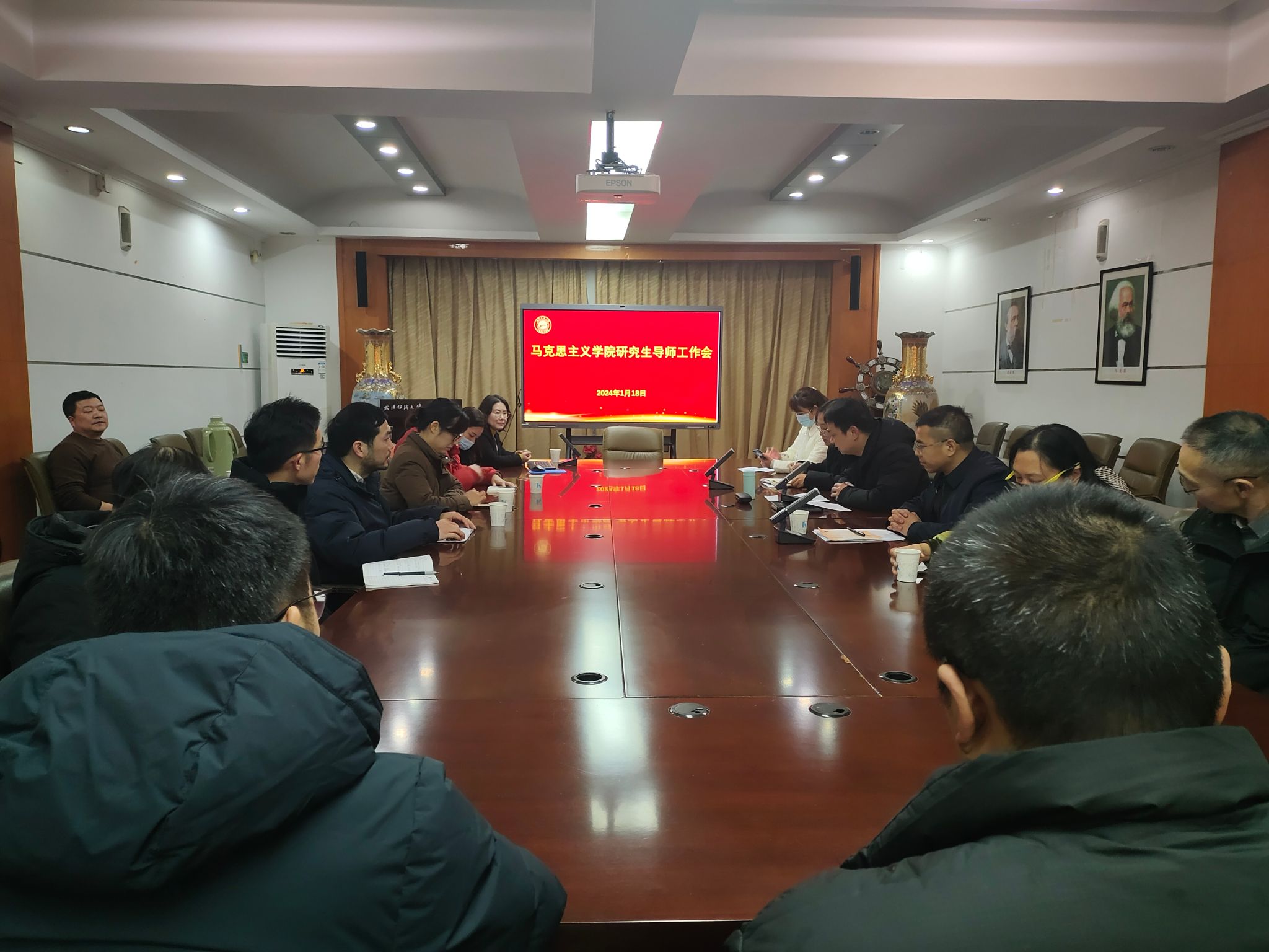1月18日下午,马院在南湖东配楼201会议室召开学院研究生导师工作会议,学院班子成员、全体导师、研究生秘书参加会议,院长肖述剑主持会议。