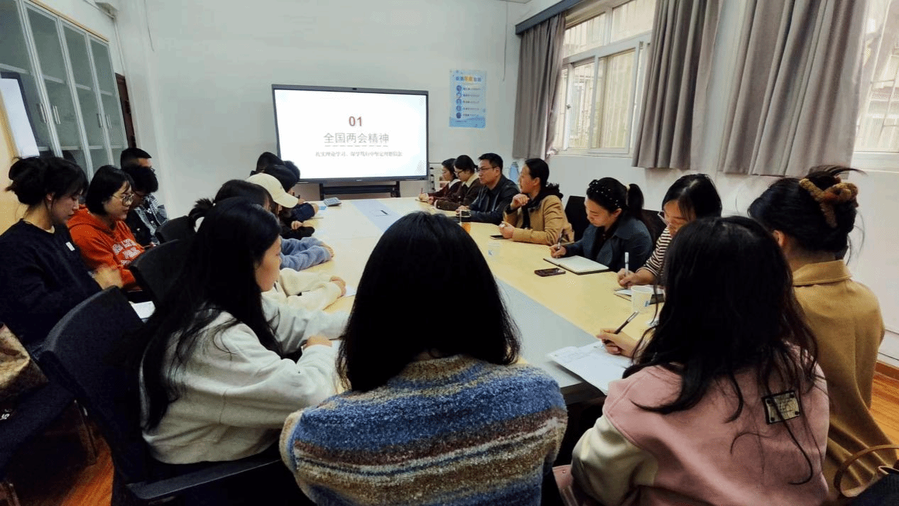 首先,金艳向同学们传达了2024年全国两会精神,强调同学们要认真学习领会全国两会精神,全面把握全国两会的鲜明特点和重大意义,深入学习领会习近平总书记在两会期间的一系列重要讲话精神,准确把握其主要内容和基本要求。切实将全国两会精神特别是习近平总书记重要讲话精神与专业学习实践相结合,发挥马院学子“学马”优势,以“信马行马”的责任担当,做一名合格的青年马克思主义者。