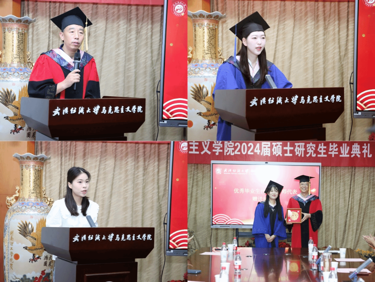 在校生代表李若男向即将离校的学长学姐们送上了真诚的祝福,表示会以他们为榜样,秉持实事求是的科学态度,不断追求真理,锤炼品格,完善自我,为续写纺大马院的辉煌篇章贡献自己的力量。