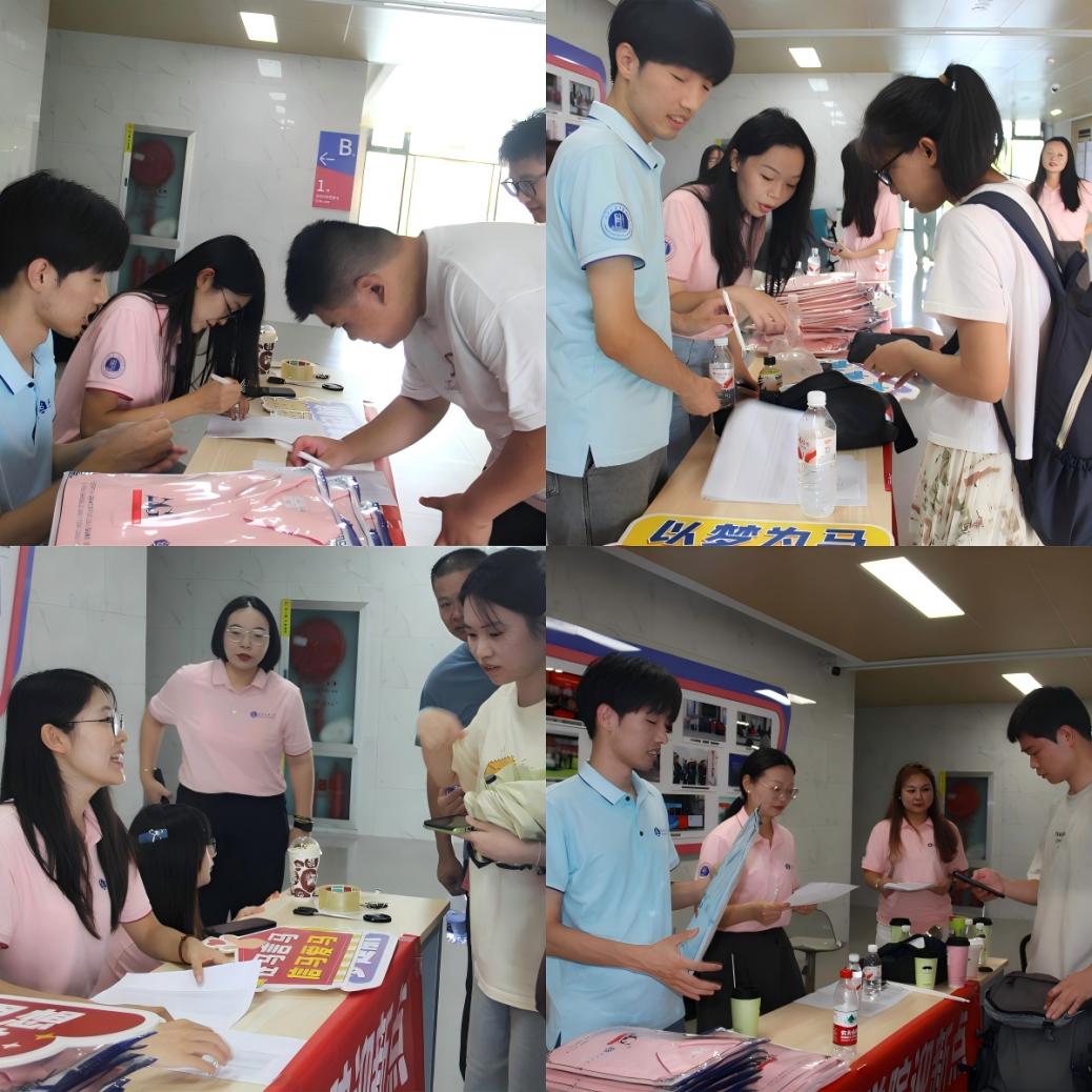 在迎新主现场,学院精心设置“一站式”服务专区,划分出信息登记、材料审核、物品发放等功能区域。工作人员与志愿者分工协作、高效配合,有条不紊地为新生办理入学登记,仔细核对身份证、录取通知书等材料,耐心讲解入学流程;同时,现场为新生发放校徽、校园卡、学生手册、学院定制文创纪念品等物品,每一份物资都承载着学院对新生的殷切期盼。此外,专区内还设置了咨询服务台,针对专业学习、生活便利、校园安全等新生关注的问题,志愿者们一一细致解答,切实为新生排忧解难。