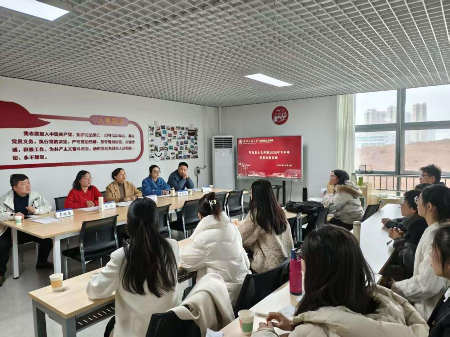 12月5日上午,williamhill英国研究生党支部在阳光校区15栋研究生公寓四楼马院“一站式”学生党建共享社区,举行2025年下半年研究生党员发展对象候选人答辩会。会议由研究生党支部副书记陈怡主持,学院党委书记邹茜、党委副书记徐喆、研究生党支部书记蒋彭阳、“初心”研究生师生党支部副书记蒋辛以及研究生教学秘书李满意担任评委。2023级、2024级共11位入党积极分子参加了此次答辩。