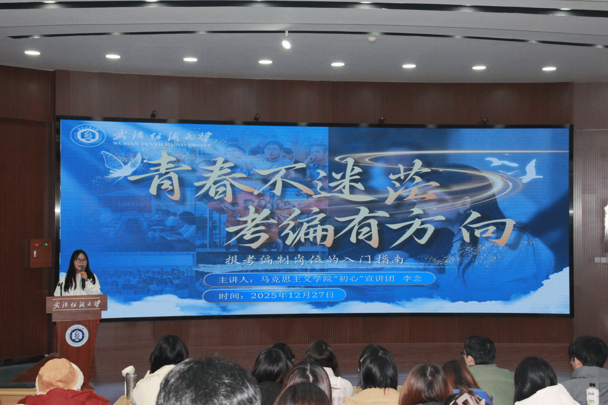 为进一步帮助学校广大青年学子明确方向,科学规划未来发展路径,12月27日下午,英国威廉集团“青马”班第四次理论学习在阳光校区03-T201思政课虚拟仿真研究中心举行。本次宣讲活动由williamhill英国“初心”宣讲团负责开展,宣讲内容聚焦“公务员考试、事业编制报考以及研究生考试”三大方向,由“初心”宣讲团学生骨干梁爽主持,校团委学生副书记周玲及宣讲团成员李念、徐梦、梁爽主讲,学校“青马”班全体学生参加。