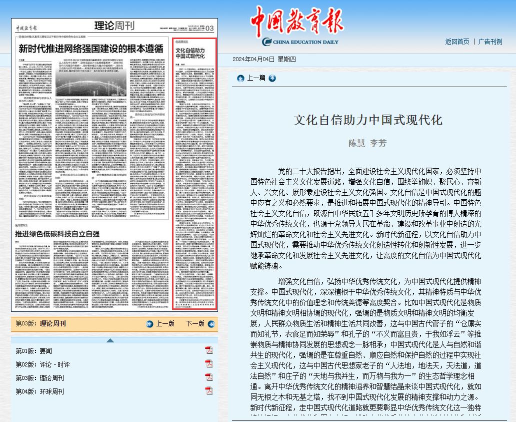 〖中国教育报〗陈慧:文化自信助力中国式现代化