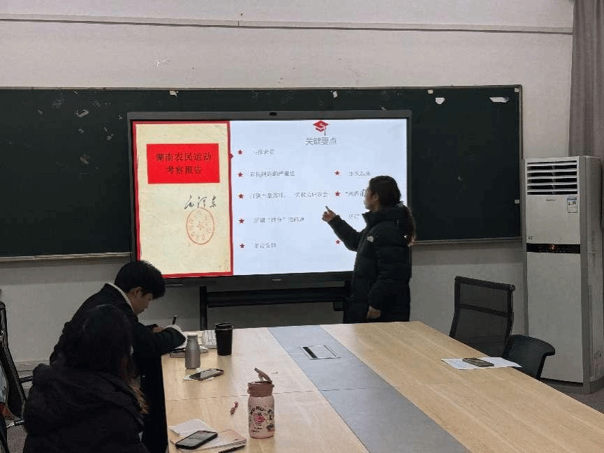 陈文鑫对《在武昌、深圳、珠海、上海等地的谈话要点》内容要点和重要意义进行了解读,并对论文的核心观点进行概括和总结。向小丫围绕《湖南农民运动考察报告》重点内容,并与同学们展开了原文内容和问题的交流与探讨。