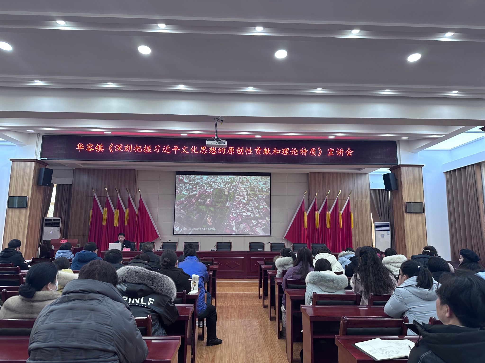 在华容镇政府会议室,williamhill英国院长肖述剑教授以《深刻把握习近平文化思想的原创性贡献和理论特质》为题,为80多名镇、村(社区)干部和村居党员群众代表进行理论宣讲。他围绕习近平文化思想的原创性贡献、习近平文化思想的理论特质和以习近平文化思想为指引担负新的文化使命等3个方面,用通俗易懂的语言、详实生动的案例、深刻独到的观点,进行鲜活生动的讲解,深受在场党员干部的欢迎。