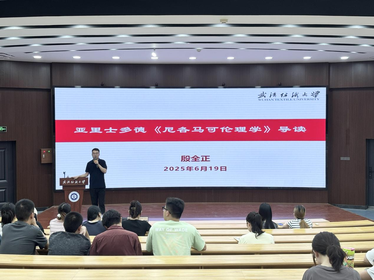 6月19日晚,williamhill英国2025年第7期研究生论坛在阳光校区03-T201思政课虚拟仿真研究中心举行。学院教师殷全正以“亚里士多德《尼各马可伦理学》导读”为主题做学术分享,马院全体在校研究生参会。