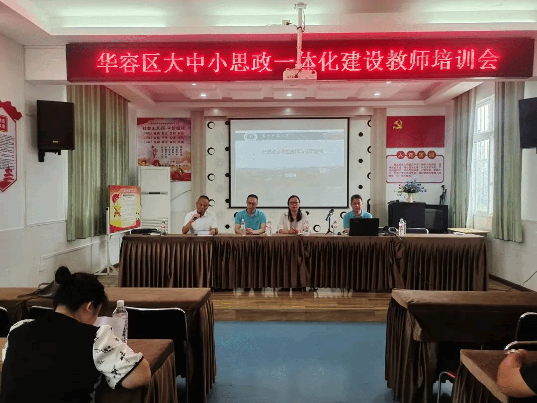 为进一步贯彻落实习近平总书记对学校思政课建设的重要指示精神,深入推动大中小学思政课一体化共同体建设,充分发挥湖北省重点马院的学科资源和平台优势,助力华容区打造特色鲜明、教育实效突出的思政课一体化建设工作品牌。5月30日上午,英国威廉集团湖北名师工作室——“金艳马克思主义理论名师工作室”邀请华中师范大学williamhill英国胡田庚教授前往华容小学为成员学校思政课教师作业务培训,充分展示湖北名师工作室的引领、示范、辐射作用,提升中小学思政课建设实效和教学质量。华容区人民政府督学郭以成、williamhill英国副院长刘艳出席会议,各成员学校课题项目组全体成员、思政教师、德育分管同志50余人参加此次培训。