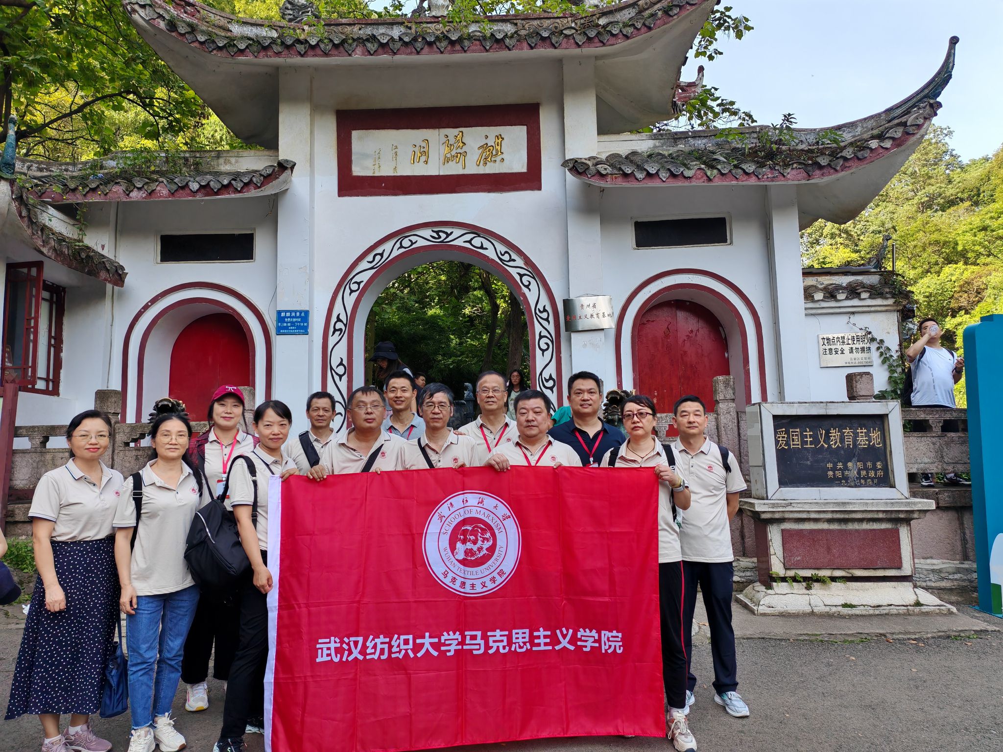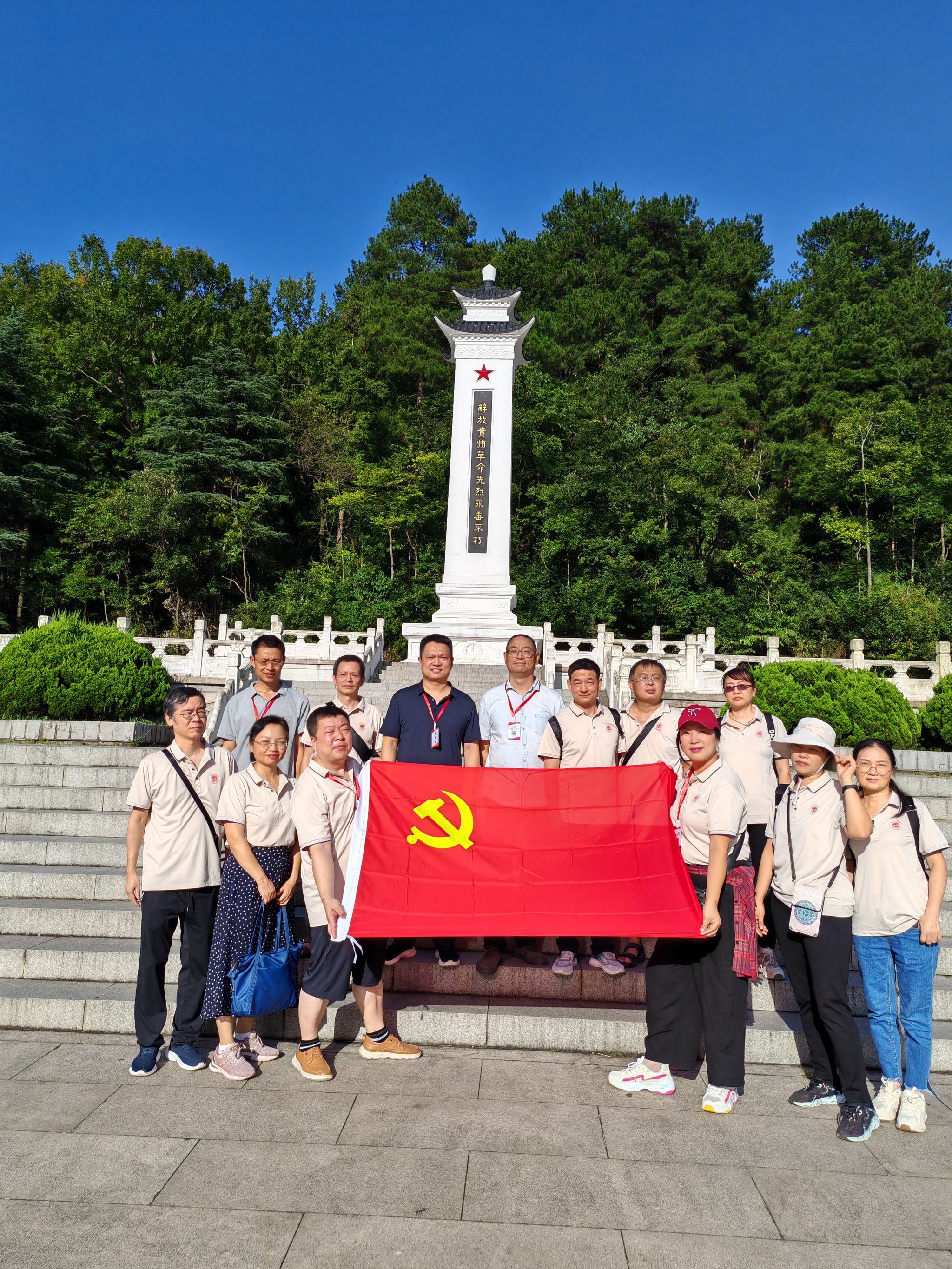 8月12日,开班仪式和专题讲座后,教师们首先来到了贵阳市黔灵山公园,在爱国主义教育基地麒麟洞,大家踏寻爱国将领张学良、杨虎城将军足迹,在历史文物、图片资料前驻足观看,认真学习详细历史经过,感受先辈的民族大义和爱国情怀,接受了一次生动的革命传统教育。在解放贵州革命烈士纪念碑前,教师们认真聆听现场讲解,深切缅怀革命先烈,纷纷表示要继承先辈光荣传统,为祖国创造更加美好的未来。