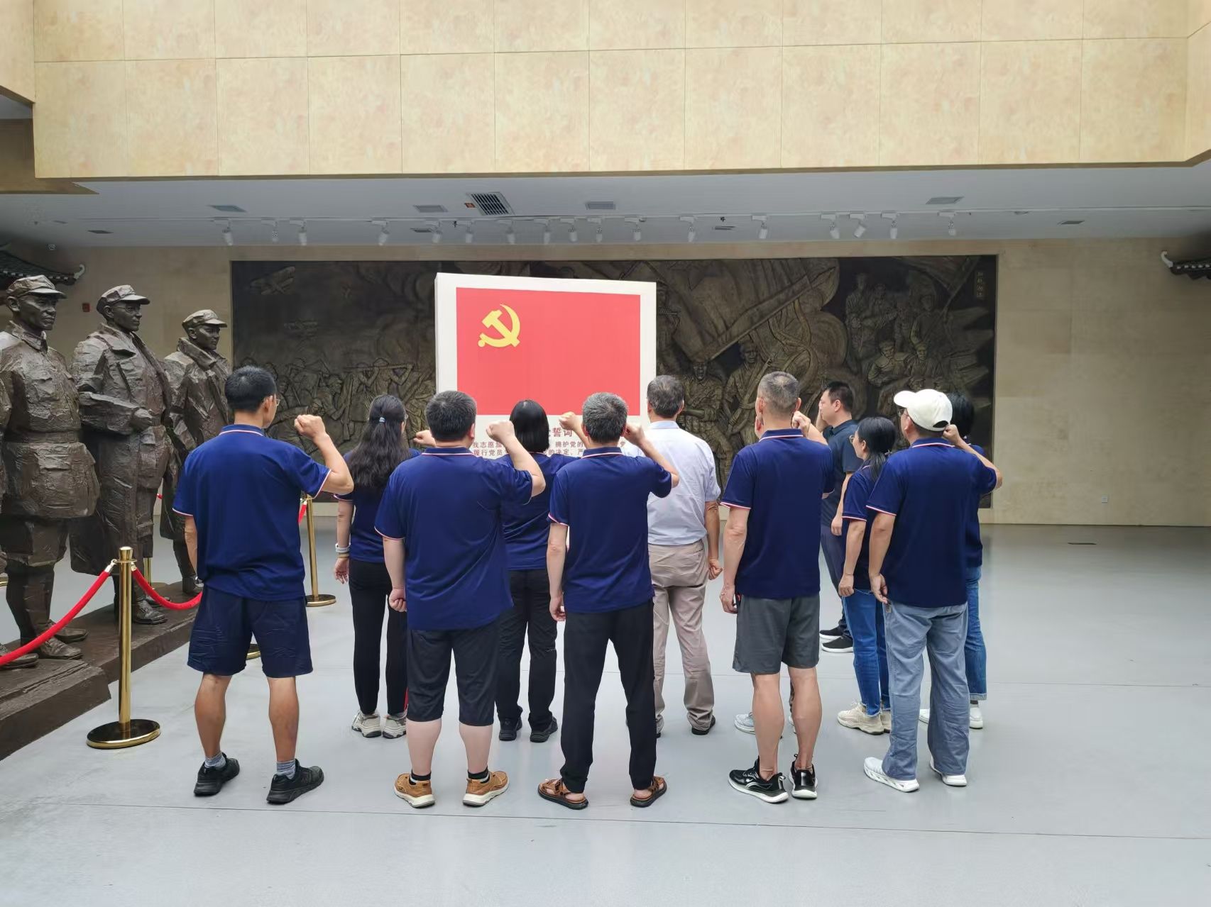 8月14日,教师们前往黎平会议会址纪念馆,通过察看一件件珍贵的历史文物、了解一个个生动的历史事件,深切体会了长征路上红军前辈的艰苦和伟人的战略智慧,进一步擦亮了初心使命、坚定了理想信念。在纪念馆内,全体思政课教师集体诵读红色经典诗词《七律·长征》,重温入党誓词,以“革命场馆里的思政课”的形式,创新了本次实践研修形式,进一步升华了研修意义。