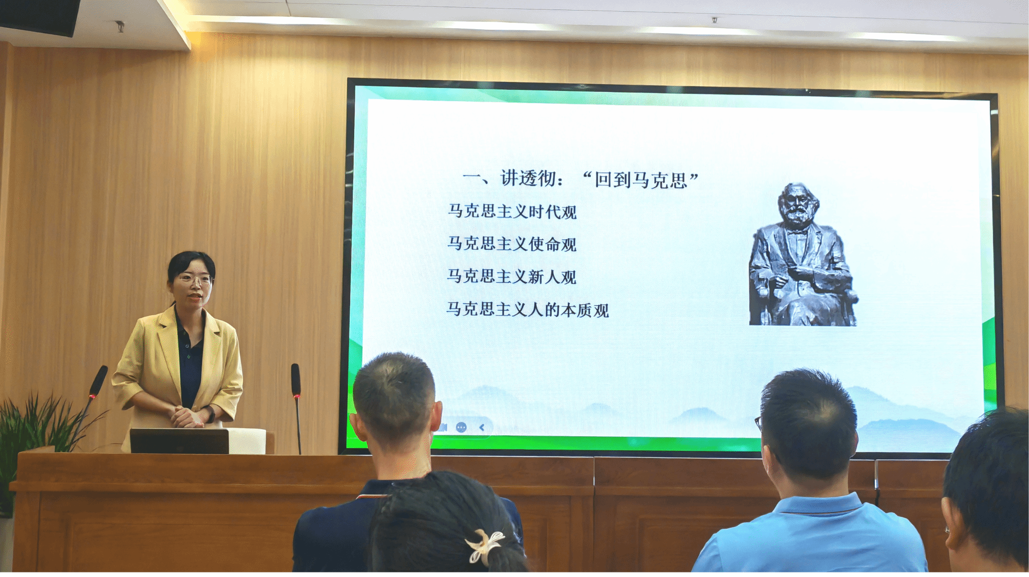 赛前,学院各教学部通过内部评比、推荐,6位优秀教师代表参加院赛。马克思主义基本原理教学部王欢老师以“实践与认识及其发展规律”为主题,通过理论讲授和具体案例分析,引导学生深刻理解实践与认识的辩证关系及其发展规律。中国近现代史纲要教学部吴文红老师从“为什么选择马克思主义”的视角出发,探讨了新文化运动和十月革命对中国马克思主义思潮产生的深远影响。思想道德与法治教学部陈慧老师围绕“担当复兴大任 成就时代新人”主题,通过案例讲解和小组讨论等多种教学方法,深入探讨了如何培养时代新人的使命感和责任感。毛泽东思想和中国特色社会主义理论体系概论教学部李静老师围绕“马克思主义中国化时代化的历史进程与理论成果”展开讲述,从多个角度阐述了马克思主义在中国化时代化过程中的重要理论贡献和发展趋势。习近平新时代中国特色社会主义思想概论教学部杨晶晶老师以“建设社会主义生态文明”为主题,通过多种教学方法,着重从情境教学和案例分析,引导学生深入思考人与自然和谐共生的重要性。毛泽东思想和中国特色社会主义理论体系概论教学部汪书路老师以《春天的故事》等红歌为课程导入,通过对这首歌创作的讲述引出中国改革开放的故事,进而引出邓小平理论这一课程内容。