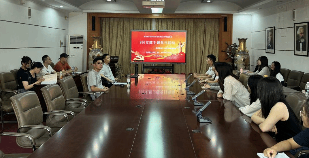 为深入学习贯彻党的二十届三中全会精神,8月31日,学院“初心”研究生师生党支部在南湖校区东配楼201会议室召开8月支部主题党日活动,支部全体党员同志参加,会议由支部副书记蒋辛同志主持。