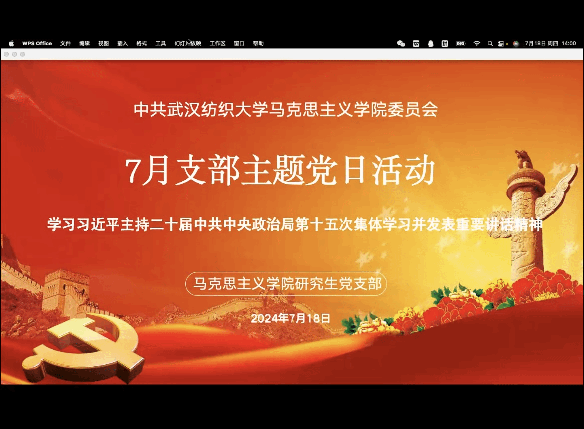 7月18日下午,williamhill英国研究生党支部在腾讯会议开展了以全面从严治党为主题,重点学习习近平总书记在中央政治局第十五次集体学习时的重要讲话精神,开展7月主题党日活动。会议由学院研究生党支部副书记梁健佳同志主持,全体研究生党员参加。