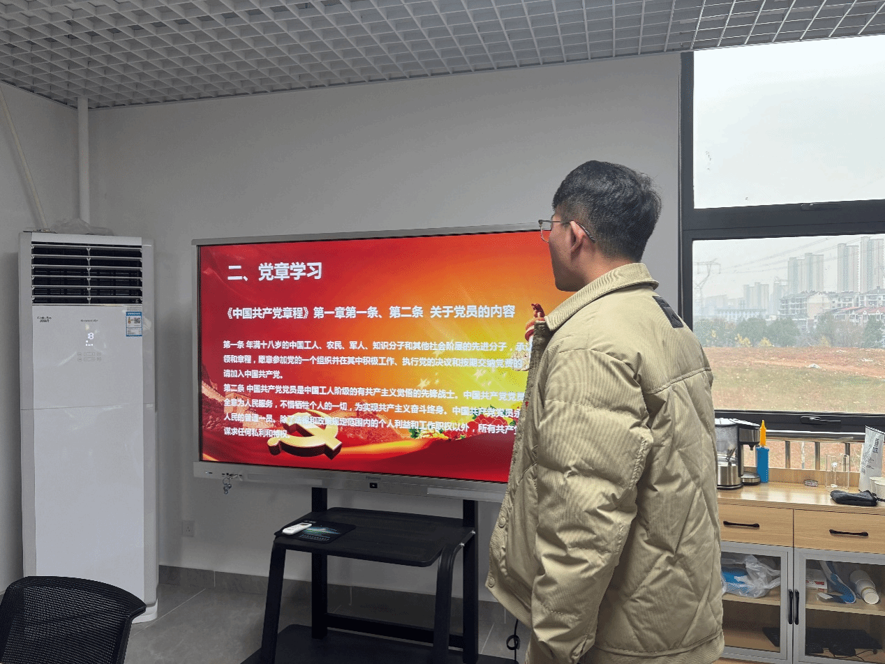 下午两点三十分整,大会在国歌声中拉开帷幕。支委成员朱明明同志宣读《中国共产党章程》第一章第一条、第二条和第七章第四十条有关党员的内容,号召全体党员要增强党性、严守纪律、砥砺作为,做一名合格的共产党员。