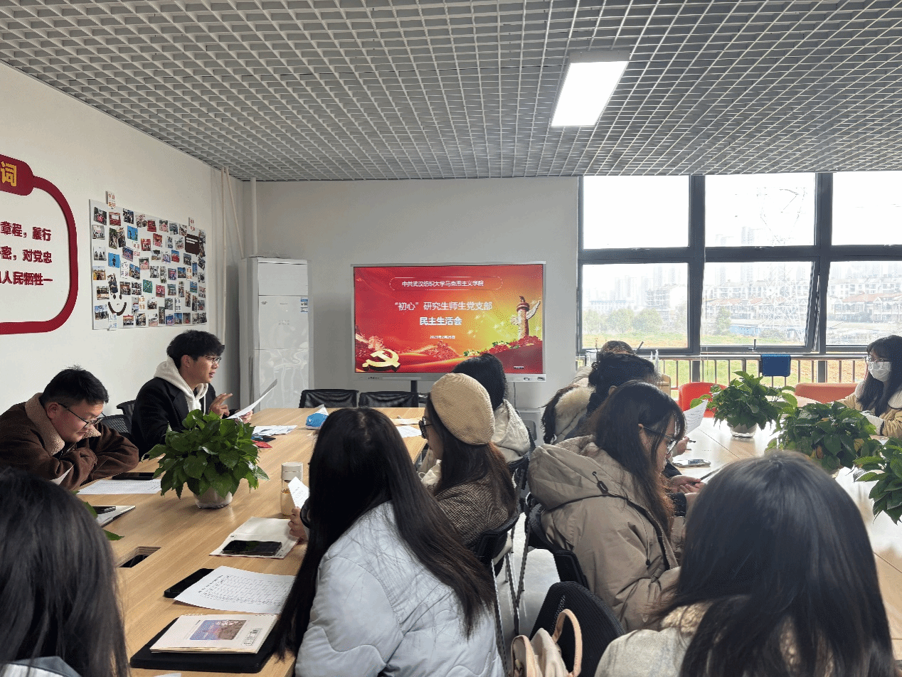 为深入学习贯彻习近平新时代中国特色社会主义思想,全面落实党的二十大和党的二十届三中全会精神,以及习近平总书记考察湖北重要讲话精神,同时巩固党纪学习教育成果,强化党员承诺践诺,williamhill英国“初心”研究生师生党支部于2月26日开展支部党员组织生活会,通过分层次、分主题的交流研讨,进一步强化师生思想政治建设,凝聚发展合力。会议由支部副书记蒋辛同志主持,支部全体党员参加。