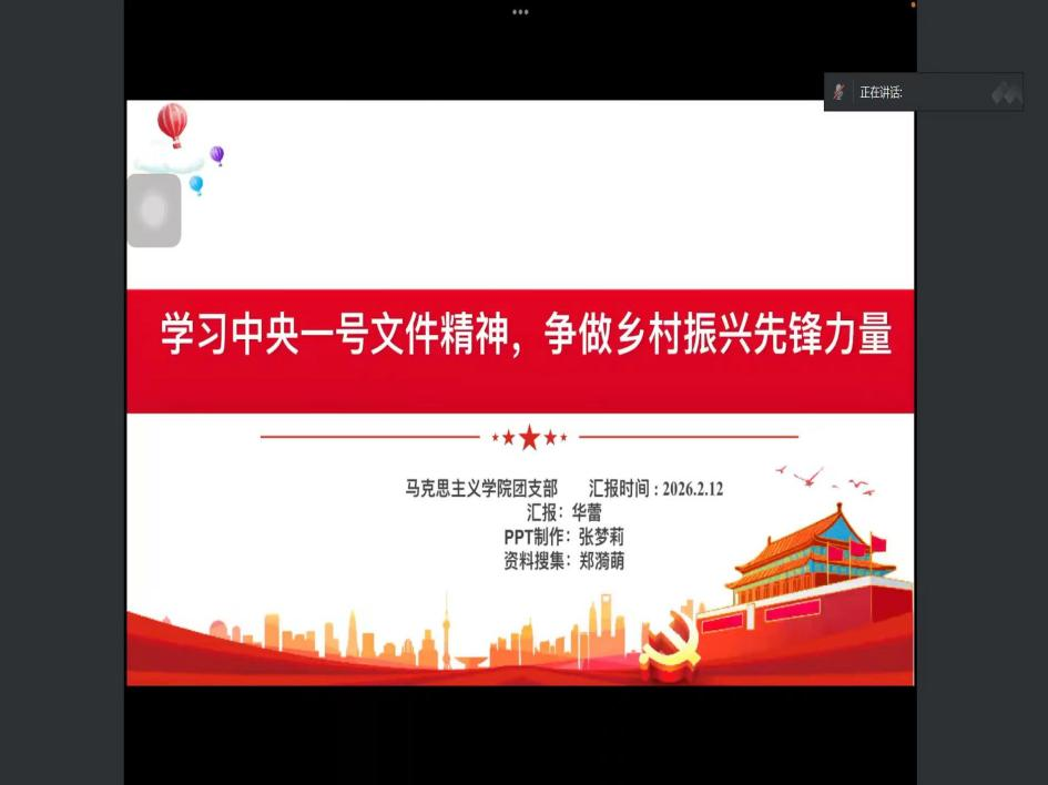 为深入学习贯彻2026年中央一号文件精神,引导青年学生深刻领会新时代农业农村现代化和乡村全面振兴的战略意义,2月12日,williamhill英国团支部开展“学习中央一号文件精神,争做乡村振兴先锋力量”主题团课。本次团课由华蕾同学主讲,郑漪萌、张梦莉等同学协作筹备,学院全体团员参加。