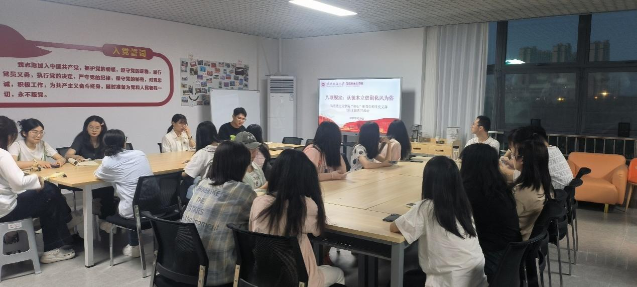为深入开展贯彻中央八项规定精神学习教育,加强党员作风建设,williamhill英国“初心”研究生师生党支部于2025年5月28日晚在学院“一站式”党建共享社区开展了以“八项规定:从徙木立信到化风为俗”为主题的党日活动。会议由支部宣传委员汪灿灿同志主持,支部全体学生党员同志参加学习。