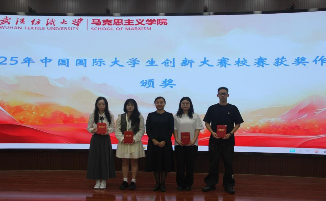 邹茜为2025年中国国际大学生创新大赛校赛获奖的团队颁奖。其中,《“星火课堂:三维立体化大思政教育公益平台创新实践”——基于VR技术的湖北红色文化传播与运用》项目团队获校赛金奖,《“一针一线”织就乡村文化振兴 ——红安绣活非遗传承行动》《星火“报”晓:武汉红色报刊资源活化与青年思政教育创新计划》和《安源薪火红旅团》项目团队获校赛铜奖。