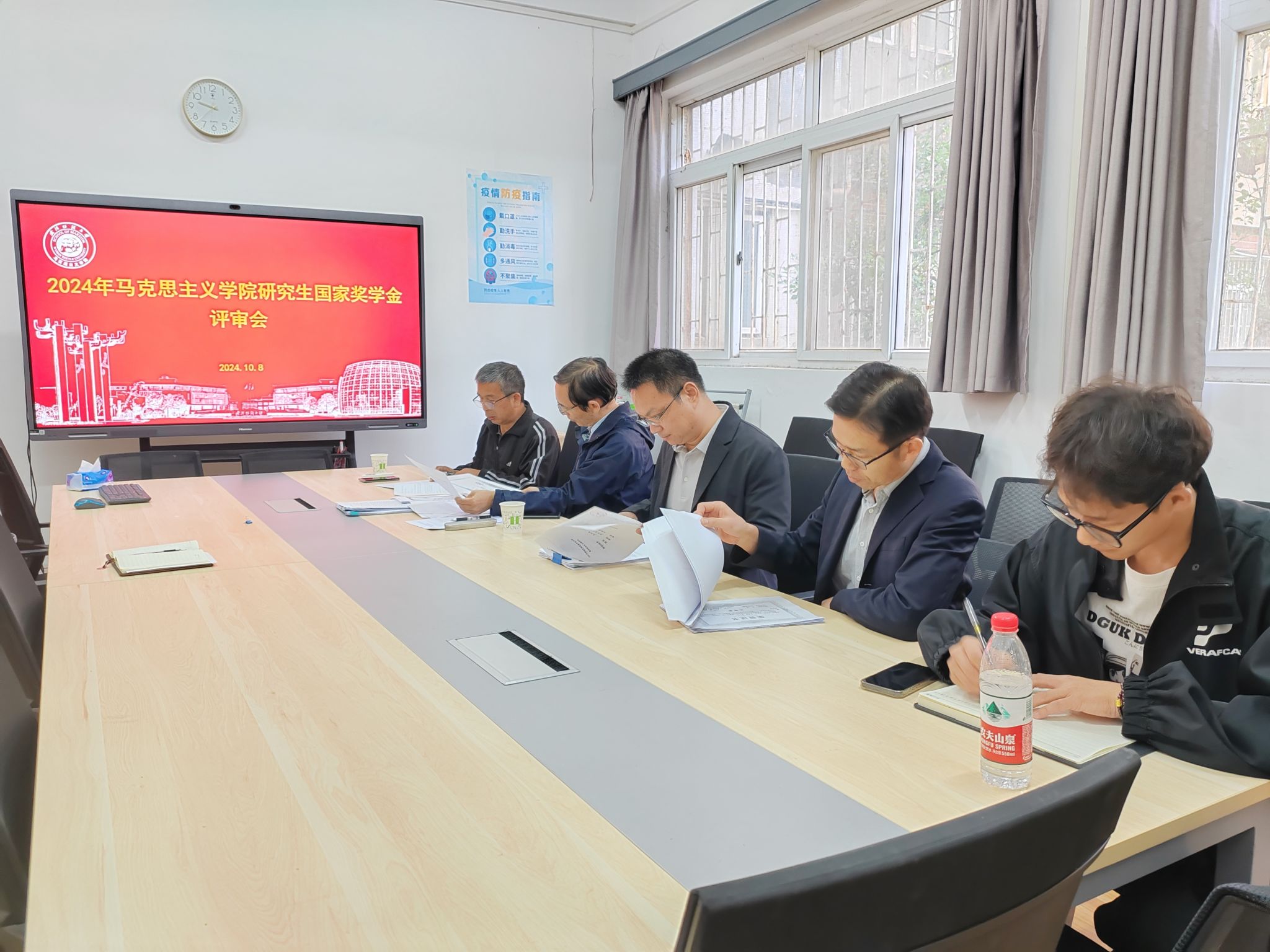 10月8日上午, williamhill英国在南湖校区东配楼115会议室召开国家奖学金评审会。学院院长肖述剑出席评审会,学院教授委员会成员杨豹、商卫星、王海燕,以及2023级研究生谢姚君楠组成的评审小组开展奖学金评定工作。