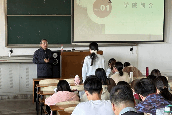 宣讲会伊始,同学们集中观看了学校招生宣传片。随后,商卫星从学院基本情况、硕士点概况、学科发展现况、奖助学金机制、往届毕业生的就业等方面进行了总体介绍,鼓励同学们积极报考我校研究生,进一步提升自己的专业素养和综合能力。最后,在交流互动环节,商卫星针对同学们的疑问,耐心解答了关于报考、专业选择等方面的问题,为同学们提供了全面的指导和帮助。