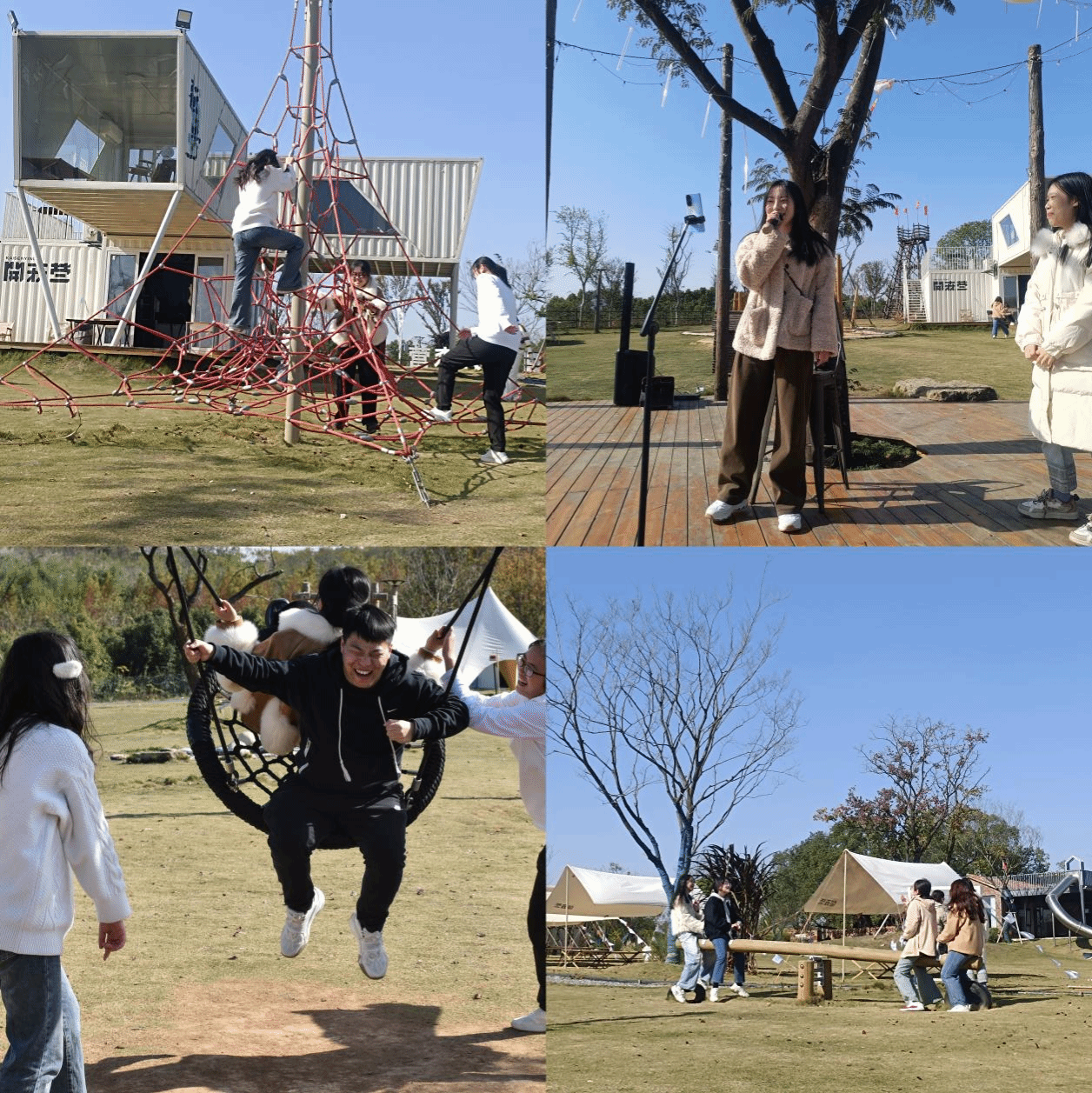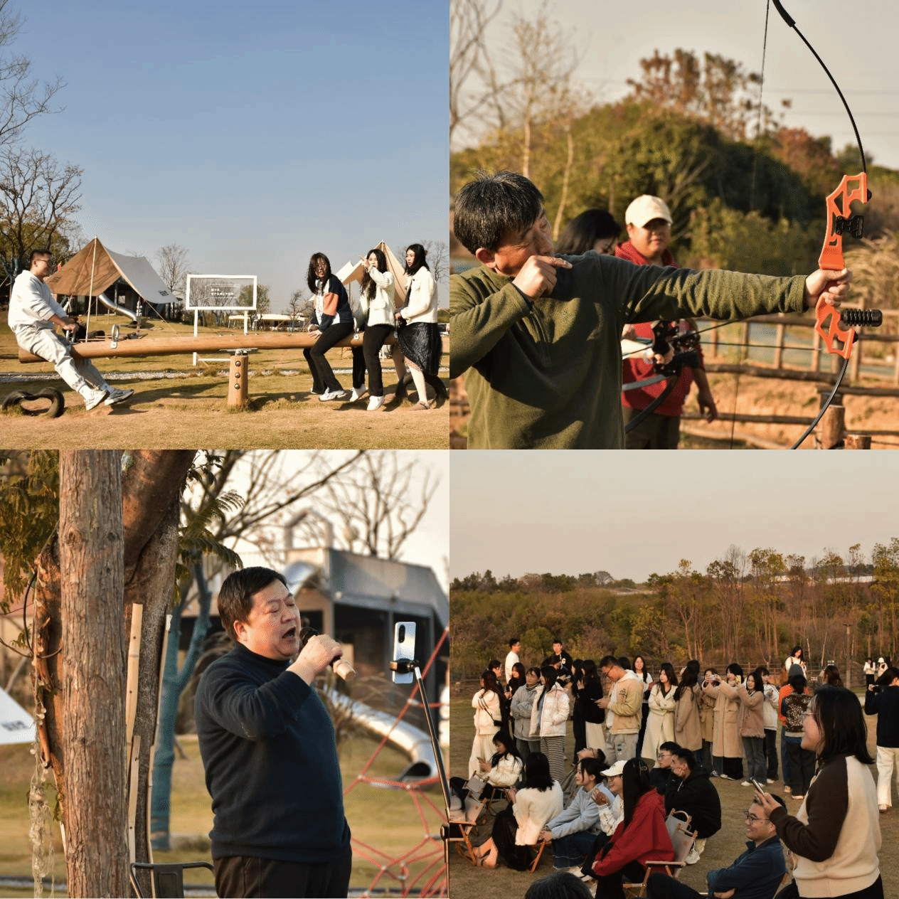 随后,全体师生在农场进行劳动实践,享受劳动带来的快乐。户外唱歌环节,师生们纷纷登台献艺,一展歌喉。紧接着,一系列体育竞技项目逐一拉开帷幕,包括台球、乒乓球、射箭等,大家在竞技比赛中全力以赴,深刻感受到团队协作的重要性。在一系列劳动活动后,篝火晚会如期举行,师生们围坐在篝火旁,伴随着欢快的音乐起舞谈笑,分享各自的故事与感悟,共同探讨学术与生活等话题。随着活动逐渐接近尾声,璀璨的烟花在夜空中绚丽绽放,为本次师生团建活动画上圆满句号。